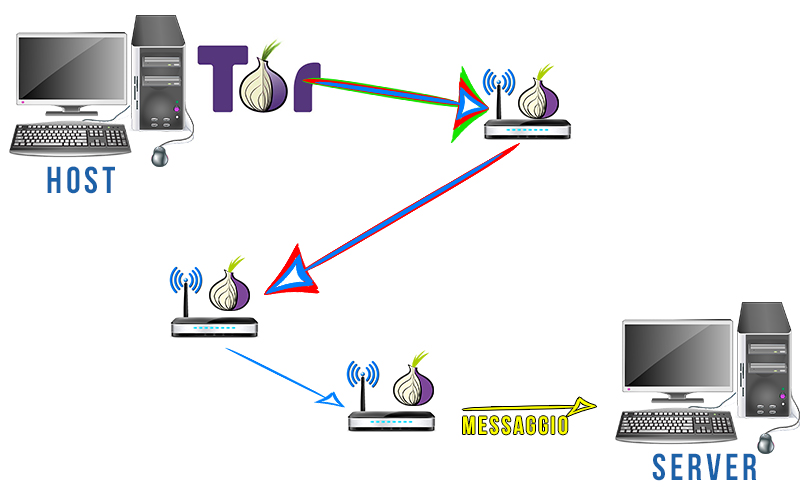 Ogni Onion Router quindi conosce solamente il router che lo precede o che lo segue e non consce tutto il percorso.
